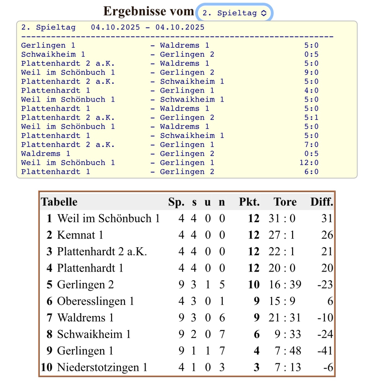 Schon vor Anpfiff in Plattenhardt war klar, dass es ein kurzer Spieltag sein wird. Sowohl Waldrems als auch Schwaikheim konnten leider nicht antreten, so dass diese Spiele von vornherein mit jeweils 5:0 für Weil im Schönbuch gewertet wurden.